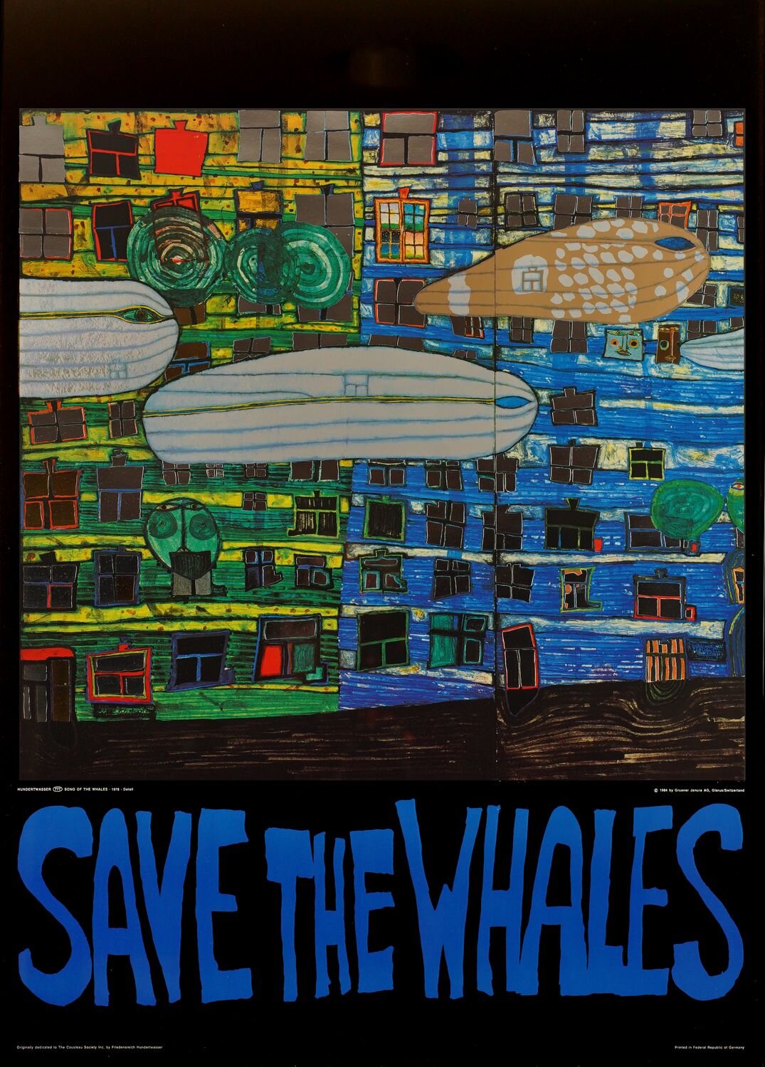 1982 gestaltet Hundertwasser zwei Umweltplakate: für den Schutz der Meere und die Rettung der Wale. Im Workshop entstehen bunte Meerestiere. Experimentiert wird mit Farbe und Wasser, unter Einfluss des Zufalls erwachen phantasievolle Meeresbewohner zum Leben.